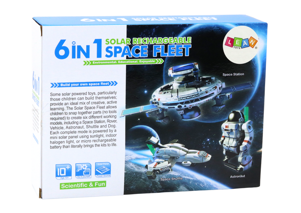 Το 6in1 Educational Solar Robot είναι ένα κιτ αυτοσυναρμολόγησης, που τροφοδοτείται από ηλιακή ενέργεια. Χωρίς κόλλα, κουμπώματα συνδέουν τα στοιχεία. Το παιχνίδι αναπτύσσει τη δημιουργικότητα και τις τεχνικές δεξιότητες των παιδιών ενώ διδάσκει για την ηλιακή ενέργεια και την οικολογία