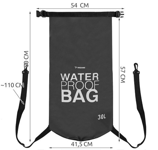 Αδιάβροχος Σάκος Xωρητικότητας 30 λίτρων με Ιμάντα Μεταφοράς Μαύρος