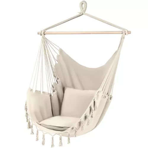 Αιώρα κάθισμα, Υφασμάτινη πολυθρόνα κούνια μονή, με μαξιλάρια, σε μπεζ χρώμα, 125x97x130 cm