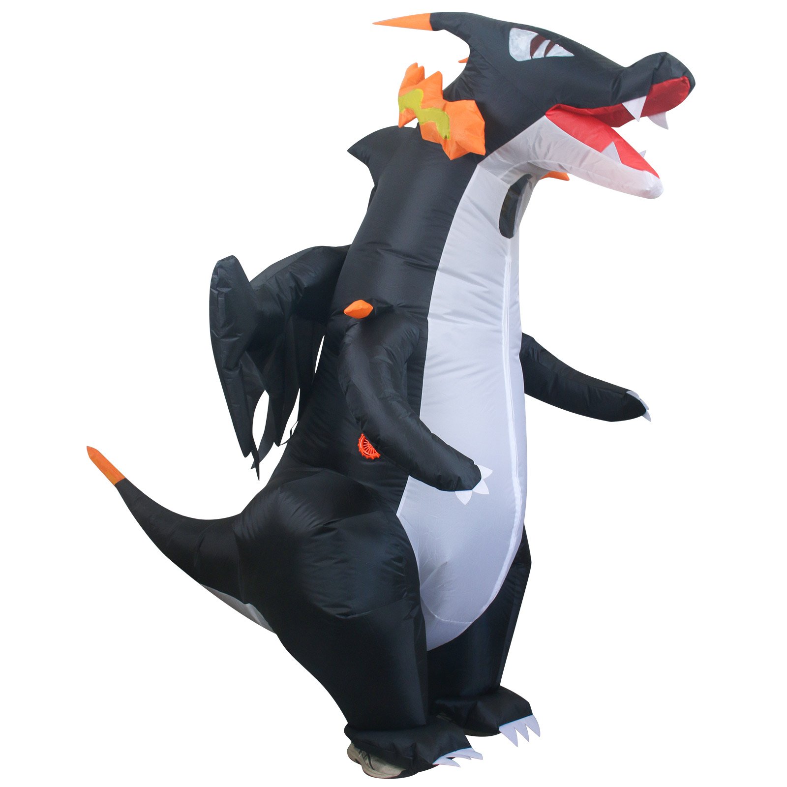 Αποκριάτικη Unisex Στολή Φουσκωτός Δράκος Μαύρος με Φωτιές