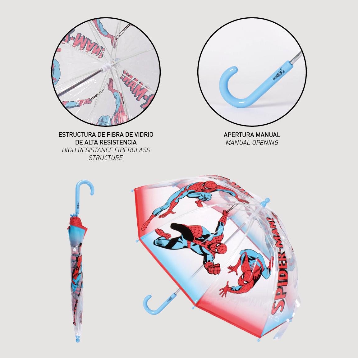 Cerda Spiderman Παιδική Ομπρέλα Μπαστούνι Διάφανη με Διάμετρο 71εκ.