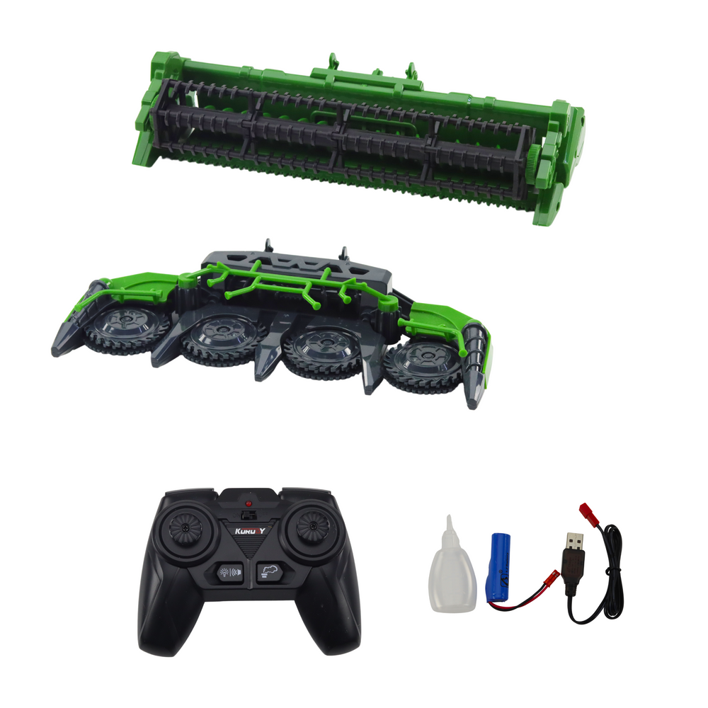 ΑΠΟΣΤΟΛΗ ΘΕΡΙΖΟΑΛΩΝΙΣΤΗ RC 1:24 Ένα παιχνίδι για τον μικρό αγρότη, που θα ενεργοποιήσει τη φαντασία και το πάθος του για τη γεωργία, μεταφέροντας το παιδί στον συναρπαστικό κόσμο των γεωργικών μηχανημάτων. Ο θεριζοαλωνιστής είναι κατασκευασμένος από υψηλής ποιότητας υλικά, που εγγυώνται την ανθεκτικότητά του, την ασφάλεια και την ρεαλιστική του εμφάνιση. Κάθε λεπτομέρεια, από την αποτυπωμένη καμπίνα έως τους προσεκτικά κατασκευασμένους τροχούς με λάστιχα, καθιστά το παιχνίδι να μοιάζει με πραγματική γεωργική μηχανή. Χάρη στο τηλεχειριστήριο, ο θεριζοαλωνιστής μπορεί να κινηθεί δυναμικά στην επιφάνεια, προσθέτοντας ρεαλισμό στην ψυχαγωγία και επιτρέποντας στο παιδί να προσομοιώνει πραγματικές αγροτικές εργασίες. Τα ηχητικά εφέ με τη μορφή βρυχηθμού κινητήρα και το φως LED που τοποθετείται στο θάλαμο του οδηγού και στην μπροστινή πλευρά της μηχανής ενισχύουν ακόμη περισσότερο την αυθεντικότητα της διασκέδασης και προσφέρουν ακόμη περισσότερη ευχαρίστηση. Ο θεριζοαλωνιστής είναι εξοπλισμένος με δύο εναλλάξιμες κεφαλές – μία προοριζόμενη για την συγκομιδή καλαμποκιού και μία άλλη για σιτηρά. Η κεφαλή για το καλαμπόκι διαθέτει κινητούς κυλίνδρους, οι οποίοι περιστρέφονται κατά την κίνηση, ενώ η κεφαλή για τα σιτηρά είναι εξοπλισμένη με περιστροφικό τροφοδότη που κινείται κατά τη διάρκεια της εργασίας. Η δυνατότητα εναλλαγής των κεφαλών επιτρέπει στο παιδί να αναπαράγει πραγματικές διαδικασίες συγκομιδής και να προσαρμόζει τη μηχανή σε διάφορες καλλιέργειες. Επιπλέον πλεονέκτημα είναι ο περιστρεφόμενος σωλήνας εκφόρτωσης, ο οποίος μπορεί να αλλάξει τη θέση του, επιτρέποντας ρεαλιστική προσομοίωση της εκφόρτωσης των συγκομισθέντων καρπών. Ο πολυλειτουργικός γάντζος που βρίσκεται πίσω από τη μηχανή επιτρέπει τη σύνδεση ρυμούλκων και άλλων γεωργικών αξεσουάρ, καθιστώντας την ψυχαγωγία ακόμη πιο πλούσια. Αυτό είναι ένα μοναδικό παιχνίδι που όχι μόνο διασκεδάζει, αλλά επίσης αναπτύσσει τη δημιουργικότητα και τις δεξιότητες χειροτεχνίας του παιδιού, διδάσκοντας του τις βασικές αρχές λειτουργίας γεωργικών μηχανών και εργασίας στη φάρμα. ΣΠΕΣΙΦΙΚΑΓΙΑ: Διαστάσεις του θεριζοαλωνιστή: πλάτος 11 cm x ύψος 13 cm x μήκος 18 cm Διαστάσεις του θεριζοαλωνιστή με κεφαλή: πλάτος 21,5 cm x ύψος 13 cm x μήκος 26 cm Μήκος του θεριζοαλωνιστή με κεφαλή και σωλήνωση εκφόρτωσης: 35 cm Πίσω τροχοί: διάμετρος 5,5 cm Πρόσθιοι τροχοί: διάμετρος 4,5 cm Υλικό: πλαστικό, καουτσούκ Τροφοδοσία: 3,7V Li (συμπεριλαμβάνεται) Τροφοδοσία ελεγκτή: 2x 1,5V AA Διαστάσεις συσκευασίας: 30 x 24 x 14 εκ. ΠΕΡΙΕΧΟΜΕΝΟ ΣΕΤ: Γεωργικός θεριζοαλωνιστής με τριβή Κεφαλή καλαμποκιού με κινούμενους κυλίνδρους Κεφαλή σιτηρών με περιστροφικό τροφοδότη
