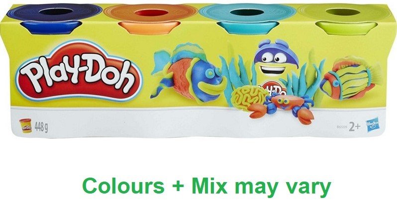 Hasbro Play-Doh 4 Βαζάκια Πλαστελίνης Super Color για 3+ Ετών, (Διάφορα Χρώματα,4 ανά Συσκευασία) 1τμχ