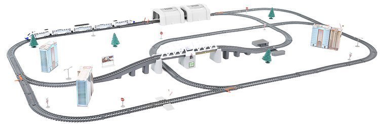 Η αμαξοστοιχία είναι σχεδιασμένη έτσι ώστε να αναπαράγει την πραγματική μηχανή με τις μικρότερες λεπτομέρειες. Μετά την ενεργοποίηση του ίδιου του τρένου κινείται κατά μήκος της γραμμής, τραβώντας τα συνδεδεμένα βαγόνια. Το σετ περιλαμβάνει επίσης μια γέφυρα με σήραγγα που μπορεί να ελέγξει το παιδί με ένα κουμπί.