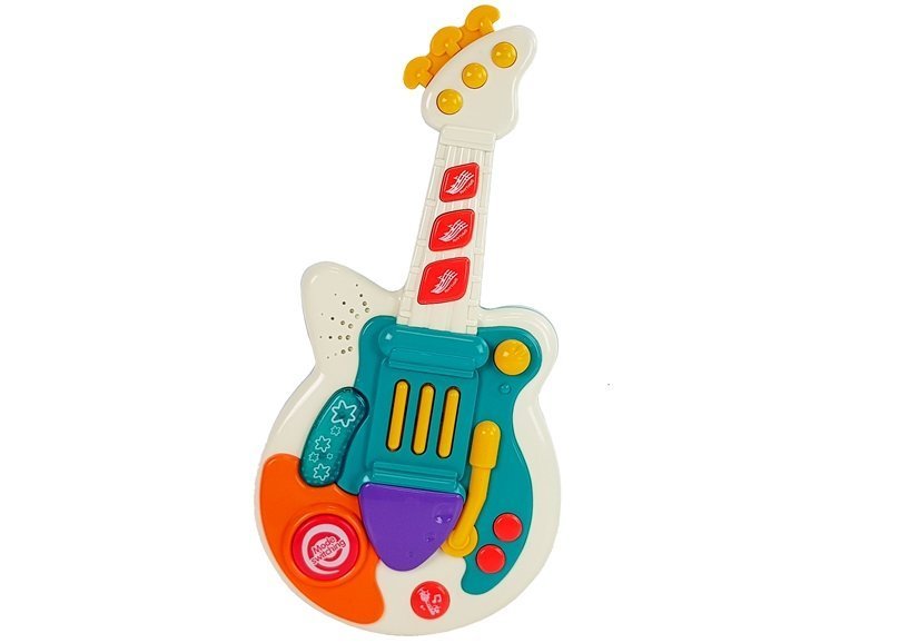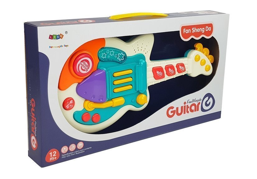 Το παρουσιαζόμενο πολύχρωμο μουσικό παιχνίδι έχει σχήμα πραγματικής ηλεκτρικής κιθάρας. Τα όμορφα, σωστά επιλεγμένα χρώματα θα κάνουν κάθε παιδί να ενθουσιαστεί με το παιχνίδι. Η κιθάρα έχει απλοποιημένα, στρογγυλεμένα σχήματα, τα οποία είναι πολύ ασφαλή για το μικρό παιδί. Το διαδραστικό παιχνίδι είναι εξοπλισμένο με 8 κουμπιά, με τα οποία το μικρό παιδί μπορεί να ξεκινήσει ενδιαφέρουσες μελωδίες και διάφορους ήχους.