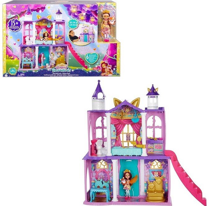Καλώς ήρθατε στο Κάστρο των Enchantimals! Με 5 περιοχές παιχνιδιού και ύψος 66 εκ., αυτό το κάστρο εμπνέει τη φαντασία των παιδιών για πολλές πριγκιπικές ιστορίες. Κατάλληλο για παιδιά ηλικίας 4+ ετών.