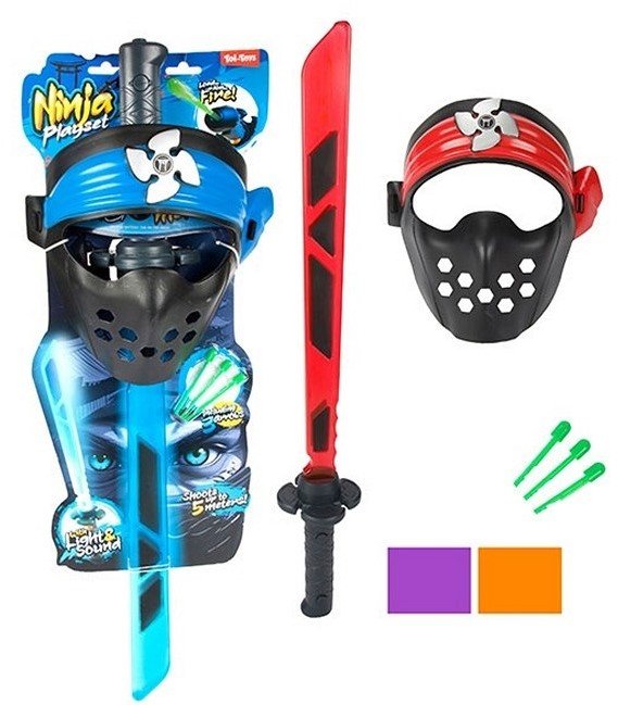 Σετ Μάσκα Mε Σπαθί Νίντζα Samurai με Φως και ήχο Μπλε 23.5x70cm