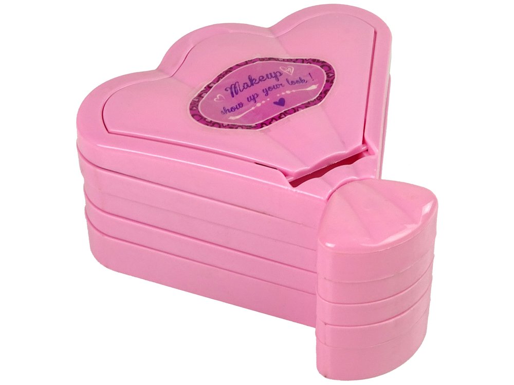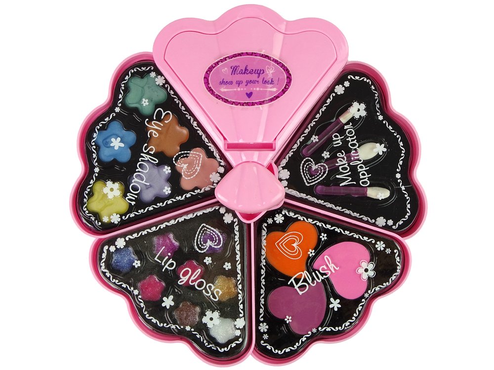 Όλο το σετ περιέχεται σε μια τσάντα καλλυντικών σε σχήμα κοχυλιού, η οποία αποτελείται από τέσσερα συρτάρια. Κάθε ένα από αυτά κρύβει κάτι ξεχωριστό. Ένα στρώμα κρύβει πινέλα. Μια άλλη στρώση περιέχει τρία ρουζ. Η τρίτη παλέτα περιέχει γυαλάδες. Η τελευταία είναι σκιές ματιών σε 6 χρώματα. Ώρα για μια μέρα ομορφιάς! Μαζί με τους φίλους σας μπορείτε να ξεκινήσετε την περιπέτειά σας με το επάγγελμα του make-up artist. Το μέγεθος της παλέτας καθιστά δυνατή τη μεταφορά της πάντα μαζί τους σε μια μικρή τσάντα για κορίτσι.