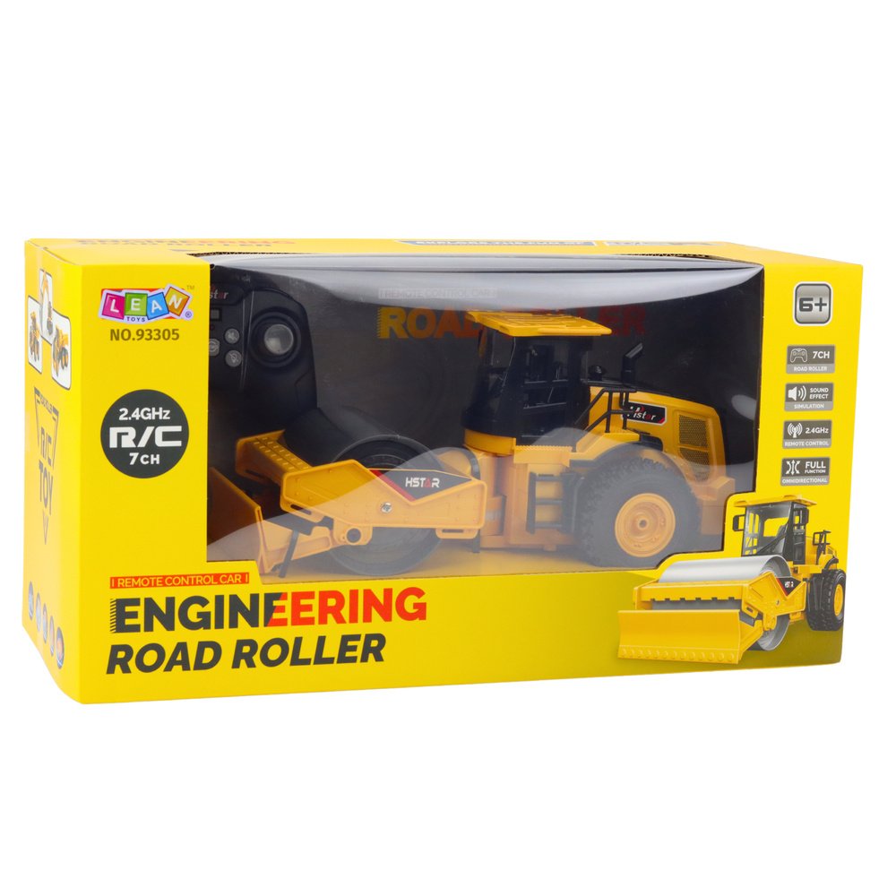 Το τηλεκατευθυνόμενο όχημα κατασκευών με μπροστινό κύλινδρο είναι ένα ρεαλιστικό παιχνίδι κατασκευών για παιδιά που αγαπούν τα μηχανήματα κατασκευών και την αναπαράσταση σκηνών από το εργοτάξιο. Το μοντέλο αναπαράγει πιστά την εμφάνιση ενός πραγματικού συμπιεστή - διαθέτει έναν μεγάλο, περιστρεφόμενο κύλινδρο στο μπροστινό μέρος, καμπίνα χειριστή, τεράστιους τροχούς και μια συμπαγή, κίτρινη δομή.